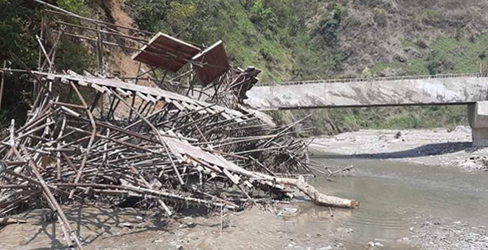 ४२ मिटर लम्बाई रहेको उक्त पुलको २१ मिटरको ढलान भईसकेको, अर्को स्थानमा ढलानको तयारीमा रहेको थियो । तर बाढीले पुलको निर्माण सामग्री बगाएपछि निर्माणको कार्य पछि धकेलिएको हो । पुलको निर्माण सामग्री बाढीले बगाएर ५ किलोमिटर तल पुल निर्माणका सामग्रीहरु खोला भरी छरिएर रहेको स्थानीय रामु केसीले जानकारी दिए । सडक पूर्वाधार विकास कार्यालय गुल्मीबाट गजुरमुखी हरी जे.भी.ले पुल निर्माणको जिम्मा लिइएको थियो । बाढिले निर्माण सामग्री बगाउँदा करोडौँको नोक्सान हुन पुगेको उक्त पुलका सुपरभाइजर कमल पुनले बताए । उनका अनुसार निर्माणाधिन पुलको सतहमा रहेको पलाईउड, छड, फलामको टेका, हुयमपाइप,जेनेटर, पम्पसेट, ब्रेकर, जग क्लाम्बु, सिमेट, गिटी, बालुवा, जिआई रेलिङ पाइप ग्यावीन जाली लगायतका समग्री बाढीले बगाएपछि करोडौँको नोक्सान भएको हो । २ करोड २५ लाखको लागतमा पुल निर्माण हुन लागेको थियो ।