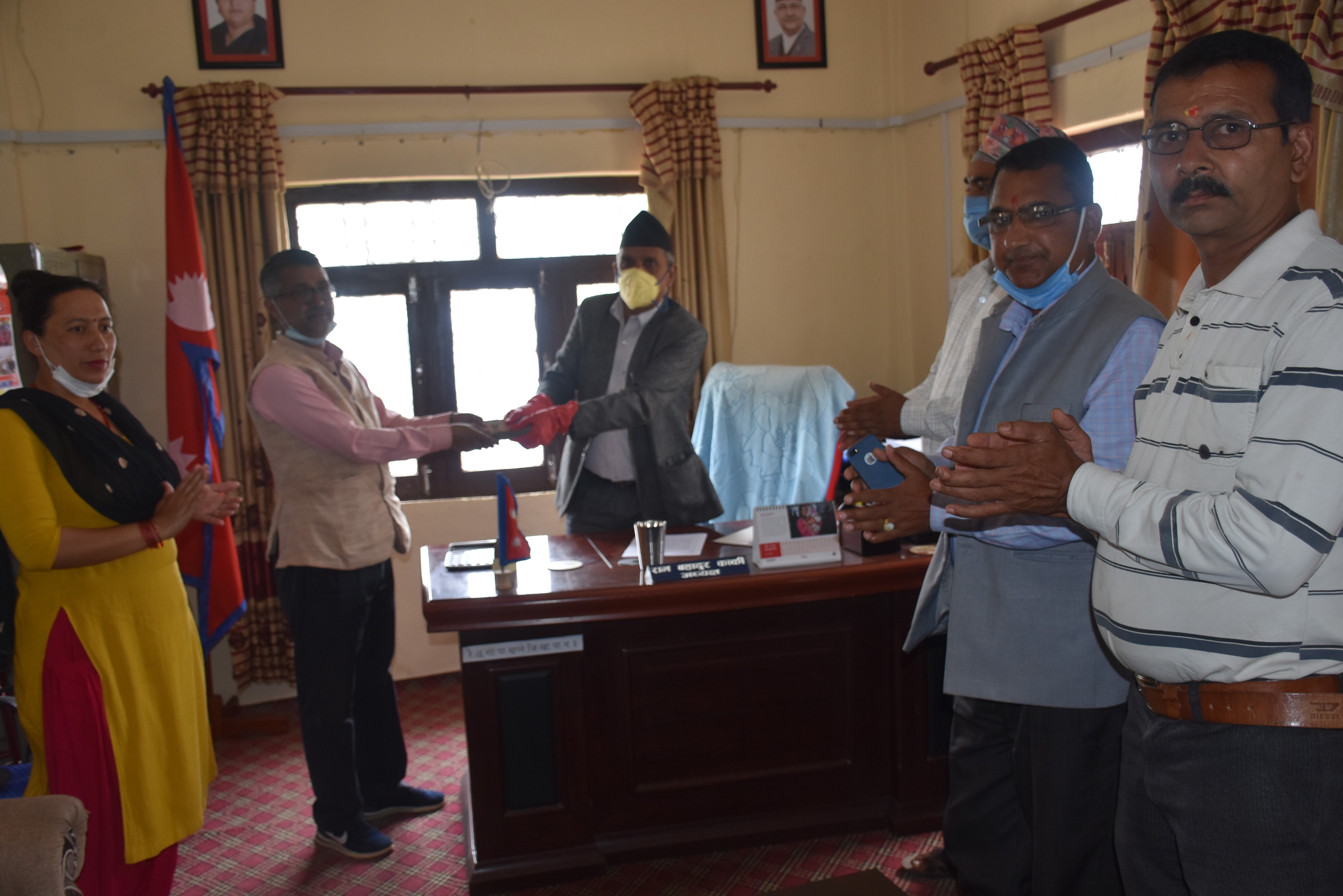 नेपाली काँग्रेस रैनादेवी छहराका सभापती बिष्णु पोखरेल, सह–संयोजक रुक्मागत भट्टराई सदस्य शकर रायमाझी लगाएतले उक्त रुकम गाउँपालिकाका अध्यक्ष रामबहादुर कार्कीलाई हस्तान्तरण गरेका हुन् ।