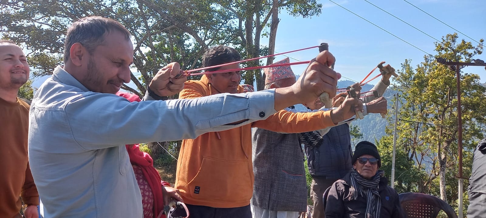 गुल्मी, जिल्लाको रुरु क्षेत्र गाउँपालिका–२ ग्वादीका ८१ वर्षीय चन्द्रमणी बराल बिहीबार गुलेली र मटेंग्रा पाएपछि खुसी देखिन्थे । गाउँमा बाँदर आतंक बढेपछि नेपाली काँग्रेस गुल्मीले ‘गुल्मी काँग्रेसको अठोट, सवल वडा सक्षम टोल’, अभियान अन्तर्गत समुदायमा काँग्रेस अभियानको क्रममा गुलेली र मटेंग्रा निःशुल्क वितरण गरेपछि बराल उत्साहित भएका हुन् ।