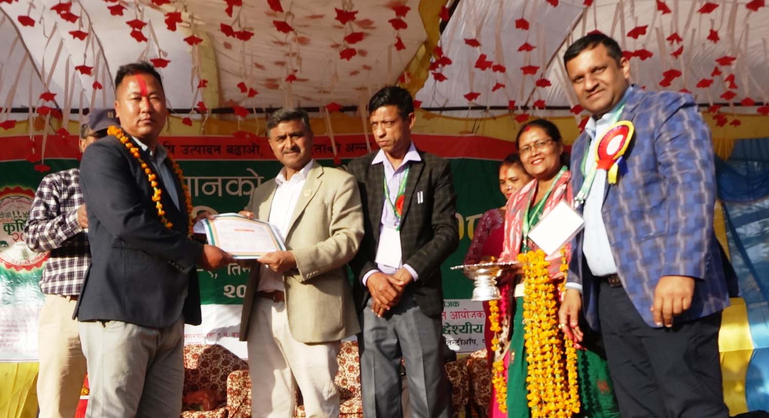 कृषि मेला तथा प्रदर्शनीको पाल्पा क्षेत्र नंं २ का संघीय सांसद ठाकुर प्रसाद गैरे, पुर्व उद्योग मन्त्री सोम प्रसाद पाण्डे, जिल्ला समन्वय प्रमुख टंकनाथ खनाल, उप प्रमुख काशिका गैरे, तानसेन नगरपालिका नगर प्रमुख सन्तोषलाल श्रेष्ठ, लुम्विनी प्रदेश कृषि निर्देशनालयका प्रमुख राम प्रसाद पाण्डे, माथागढी गाउँपालिकाका अध्यक्ष यम बहादुर चिदी, कृषक एक प्रसाद भण्डारी, पाल्पा उद्योग वाणिज्य संघका अध्यक्ष शैलेन्द्र भट्टराई, पत्रकार महासंघका अध्यक्ष रेखीराम राना लगायतका सरकारी तथा गैरसरकारी कार्यालयका प्रमुख तथा प्रतिनिधिले स्टलहरुको अवलोकन गरेका थिए । कृषि मेला तथा प्रदर्शनीमा कुखुरा बोका राखेका उत्कृष्ट कृषक तथा बाली नाली तरकारीका उत्पादनहरुमा उत्कृष्ट भएका कृषकहरुलाई प्रमुख अतिथी ठाकुर गैरे, वडा अध्यक्ष राजेश कुमार अर्याल, संस्थाका अध्यक्ष घनश्याम घिमिरे, सचिव छविलाल भट्टराई लगायतले पुरस्कार बाट सम्मानित गरेका थिए । कृषिमेलामा लोकगायक पशुपती शर्माले समसामायीक गित गाएर दर्शकहरुलाई नचाएका थिए ।