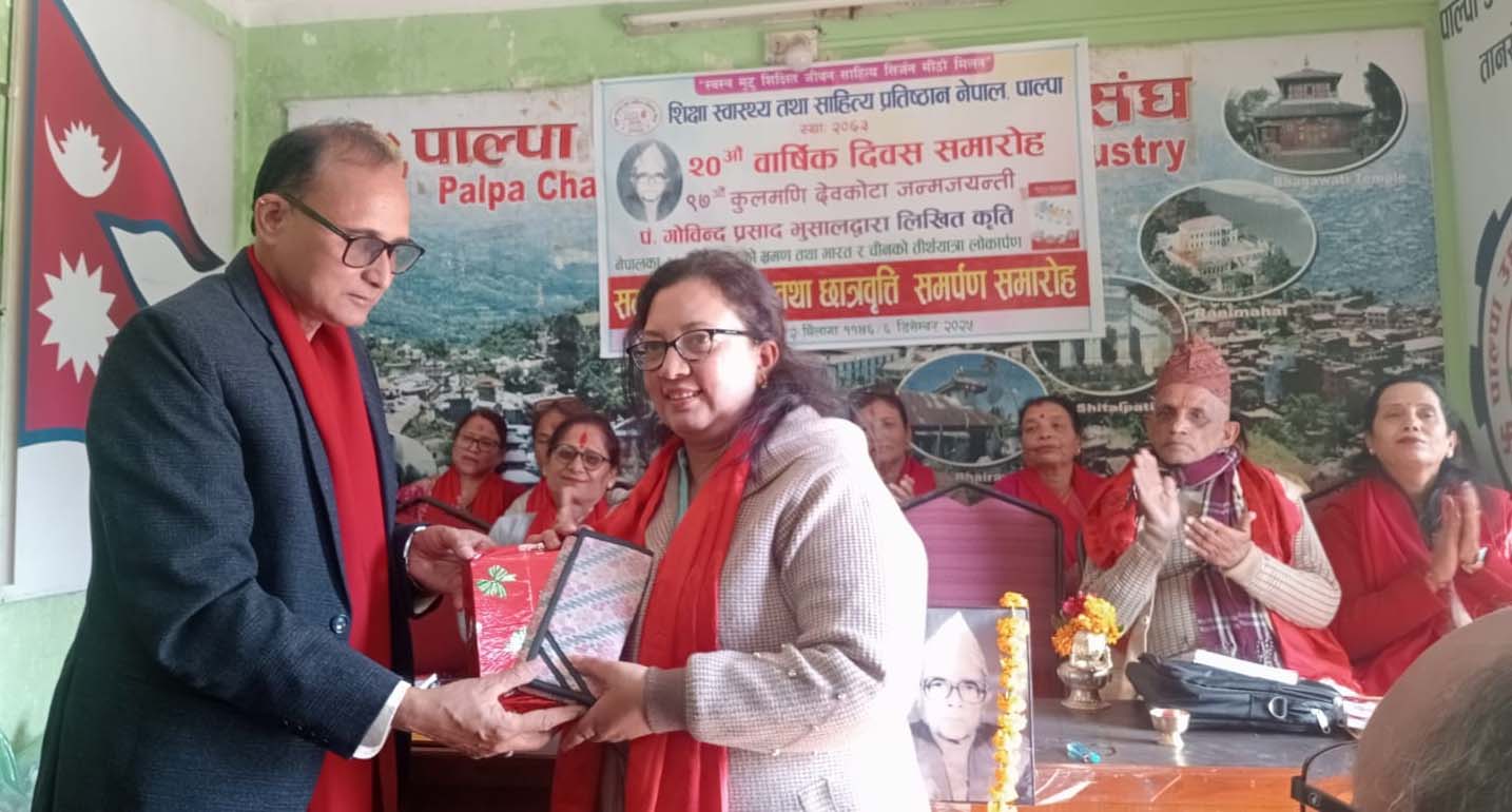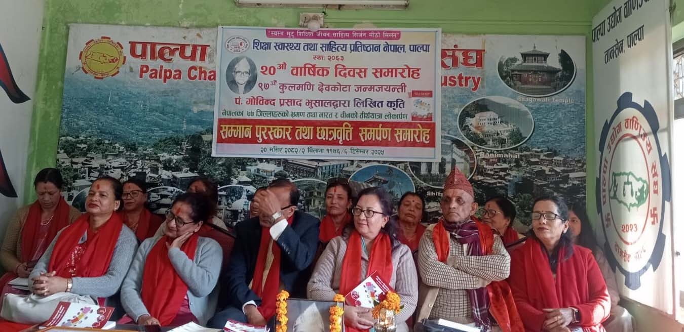 पाल्पा, शिक्षा स्वास्थ्य तथा साहित्य प्रतिष्ठान नेपालले विभिन्न क्षेत्रका ११ जना नारीहरुलाई सम्मान गरेको छ । प्रतिष्ठानको २० ओैं वार्षिक दिवस तथा ९७ ओैं कुलमणि देवकोटा जन्मजयन्ती समारोहको अवसरमा शनिबार पाल्पाको तानसेनमा पुरस्कृृत एवं सम्मान गरेको हो ।