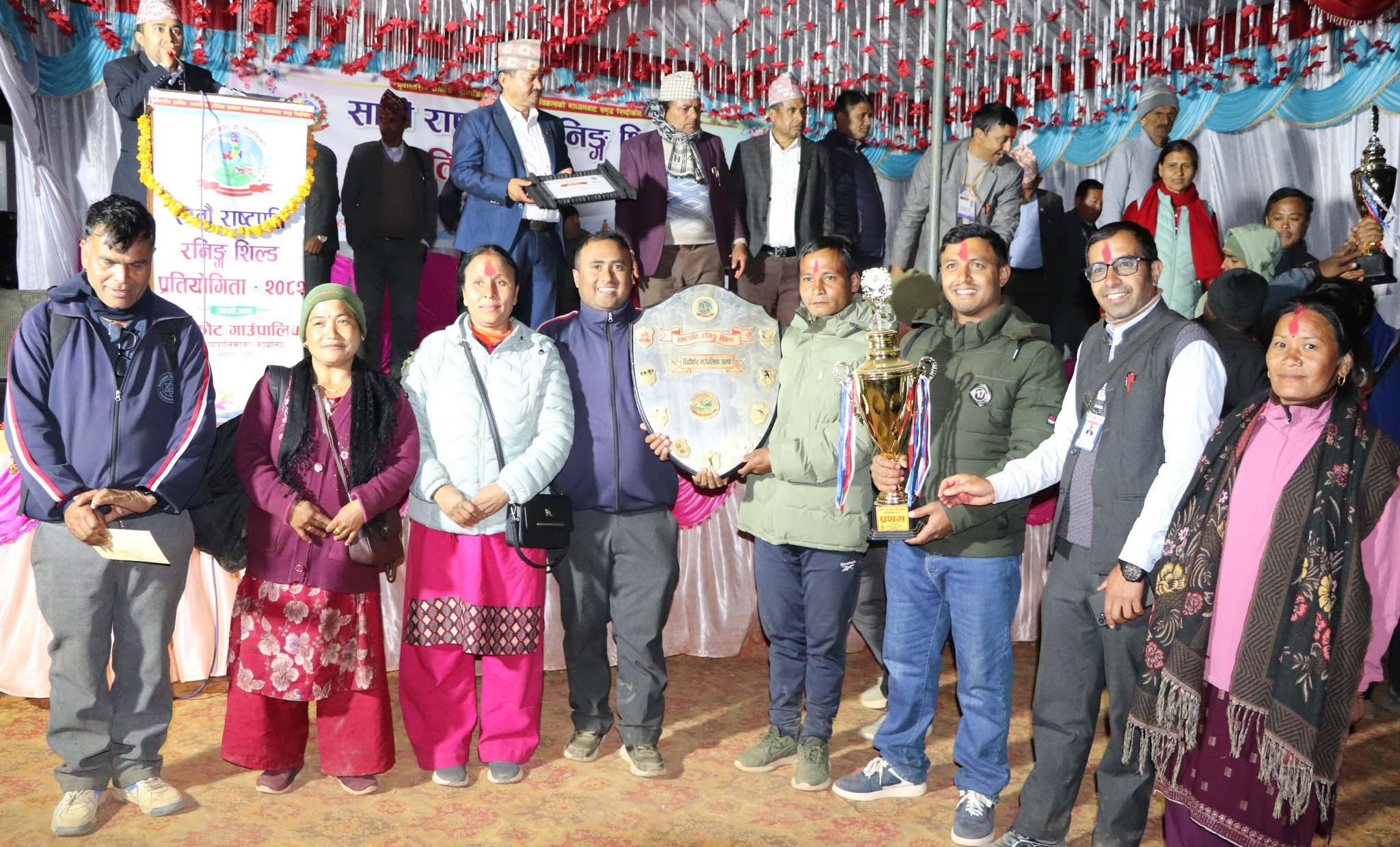 समापन कार्यक्रममा पालिकाबाट खेलमैदानको समयमै निर्माण सम्पन्न गरेकोमा निर्माण व्यबसायीलाई सम्मान गर्दै खेल मैदान संरक्षण तथा व्यबस्थापन समितिलाई कोहल खेलमैदान हस्तान्तरण गरिएको छ । पालिका अध्यक्ष नारायणबहादुर कार्कीले खेलकुदको माध्यमाबाट खेलाडीहरुले आफ्नो मात्र नभएर समाज÷देशको नामलाई समेत उचाइमा पु¥याएको, एक आपसमा भातृत्व भावनाको विकास गरेकोबताए । खेलकुदले अनुशासित र शारीरिक, मानसिक, सामाजिक, संवेगात्मक रुपमा मानव शरीरलाई स्वस्थ राख्न ठूलो सहयोग पु¥याउने अध्यक्ष कार्कीले जोड दिए । कार्यक्रममा उपाध्यक्ष कान्ता अधिकारीले खेल जगतको विस्तार र विकासका लागि गाउँपालिकाले निरन्तर सहयोग गर्दै आएको र आगामी दिनमा पनि गाउँपालिकाले खेलकुदको विकास र विस्तारमा प्राथमिकता दिएर काम गर्ने बताईन् । प्रतियोगिताका संयोजक एंव शिक्षा शाखा प्रमुख टिकाराम आचार्यले विद्यार्थीहरुको चौतर्फी विकासको लागि खेलकुद महत्वपूर्ण विधा भएको बताए । राष्ट्रपति रनिङ शिल्ड प्रतियोगिताबाट विद्यार्थीमा भएको अतिरिक्त क्षमता पूर्ण रुपमा बाहिर आउने र आफु र राष्ट्रलाई चिनाउने शसक्त माध्यम भएको बताए । प्रतियोगिताको लागि सहायक शिक्षा अधिकृत राजाराम भाट, श्रोत बिज्ञ गोपाल के.सी. लगायत शिक्षक स्वयंसेवक, खेलप्रेमीहरु तथा सरोकारवाला पक्षले सहजीकरण गरेका थिए । पालिका शिक्षा शाखाको आयोजनामा भएको प्रतियोगितामा विभिन्न २६ विद्याका खेलहरुमा ३ सय विद्यार्थीहरुको सहभागिता रहेको थियो ।