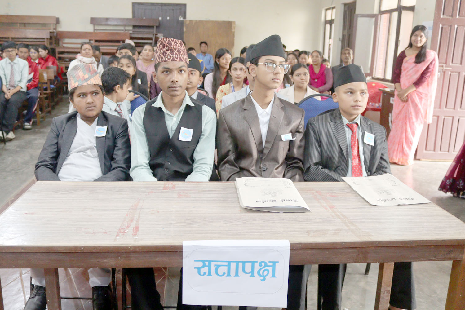सभामुखको भूमिकामा रहेकी स्वस्तिका पाण्डे संसद भवनमा प्रवेश गर्ने वित्तिकै राष्ट्रिय गान बज्यो । संसद भवनमा राष्ट्रिय गान पछि सभामुखको भूमिकामा रहेकी .पाण्डेले शुन्य समय शुरु गरिन् । शुन्य समयमा सांसद रुपी बालबालिकाहरुले सार्वजनिक महत्वका विषयमा एक/एक मिनेट आ–आफ्ना धारणा राख्दै सरकारको ध्यान आर्कषण गराए । संसदमा उठेका विषयबस्तु तत्काल कार्यान्वयन गरी जनतालाई राहत दिन युवा सांसदहरुले माग गरे । सभामुख पाण्डेले शुन्य समयमा उठेका प्रश्नहरुको जवाफ दिने सम्बन्धित मन्त्री नभएको बताउदै शुन्य समय सकिएको घोषणा गरिन । सभाहलमा भएको यस्ता गतिविधीले बालबालिकादेखी शिक्षक शिक्षिकाहरुलाई संसद भवन भित्रै रहेको महशुस गराएको थियो ।