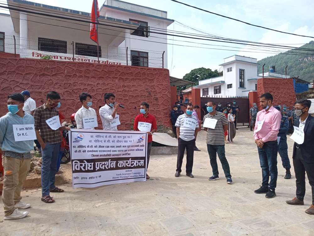पाल्पा । स्वास्थ्य सेवा र शिक्षामा सुधार माग गर्दै अनशन बसेका सत्याग्रही डा. गोविन्द केसीको समर्थनमा पाल्पाली युवाहरुले जिल्ला प्रशासन कार्यालय अगाडि प्रदर्शन गरेका छन् । अनसनको २१ औ दिन पुगीसक्दा पनि सरकारले कुनै चासो नदेखाएको भन्दै युवा सजगता अभियान पाल्पाले आइतबार प्रदर्शन गरेको हो ।